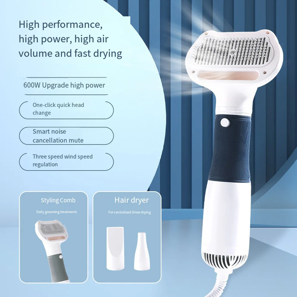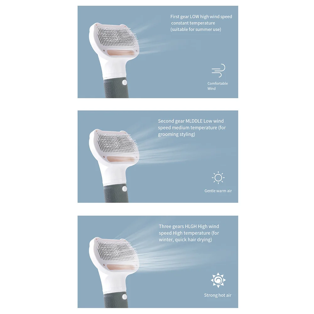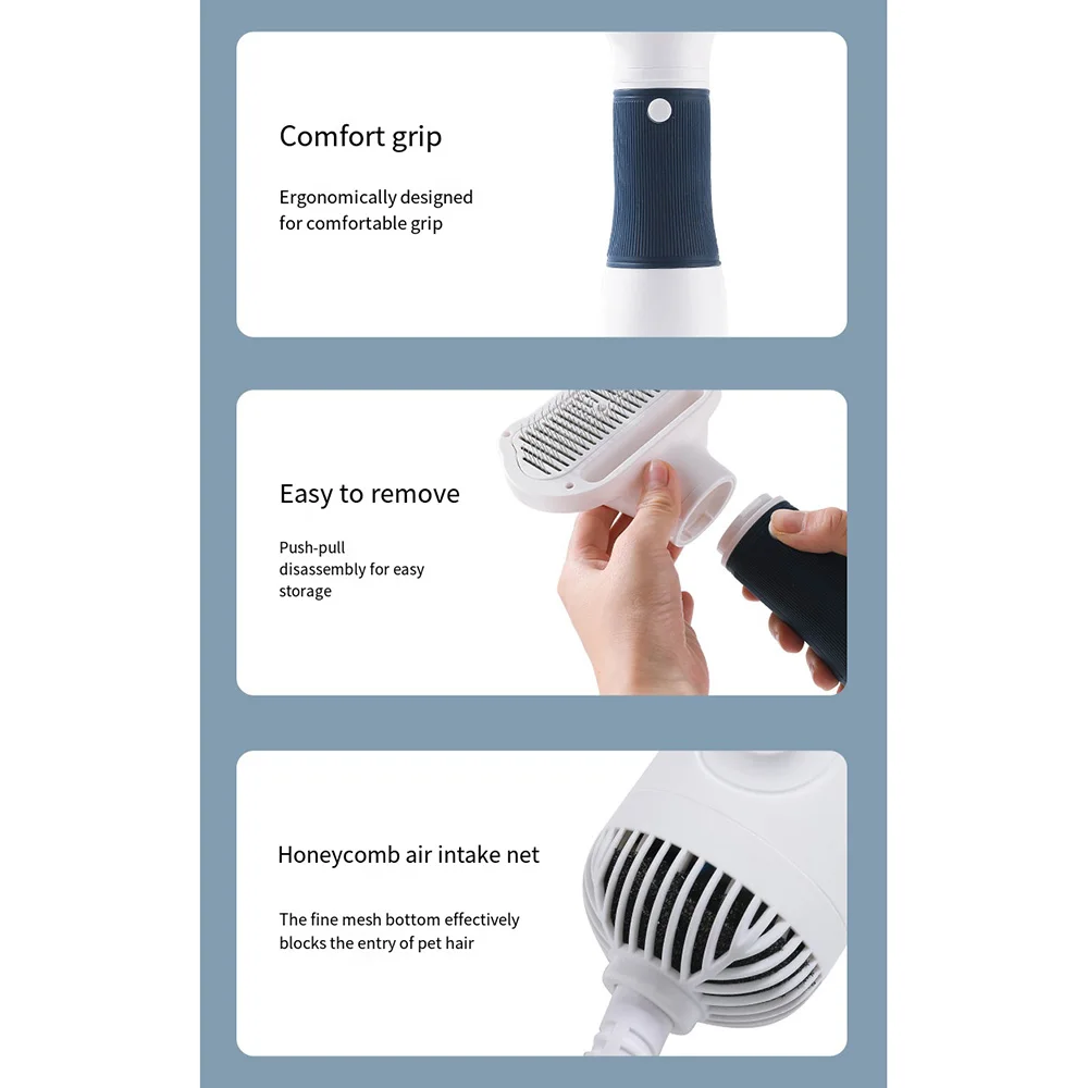 【Dryer and Slicker Brush in One】The 2 in 1 pet grooming dryer is combined dog hair dryer with hair comb brush, it can make much easier to dry your pet after bathing, a slicker brush to remove tangles and loose fur, to keep pet’s hair soft and neat. Great for dog hair brush at home, fast drying and beautiful grooming, more convenient and time saving.