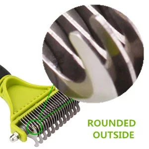 -Sharp inside, so you can smoothly remove through the toughest tangles, knots, dander and trapped dirt without pulling or tugging the hair out.