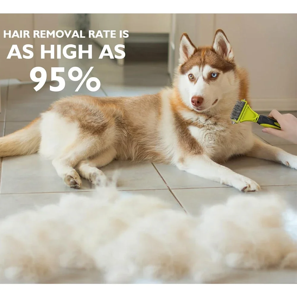 Featuring a double-sided system that nearly effortlessly removes dense tangles, this FUNAMEI all-in-one undercoat rake will not just detangle but also remove excess shedding, stubborn knots, and stuck undercoats for an overall look that’s smooth, hassle-free, and pain-free.