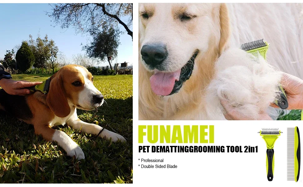 🐾【Easy Pet Grooming】 This professional pet dematting tool kit breaks up tangles, effectively removes loose hair, dander, & dirt trapped beneath the fur, and stimulates the skin to promote a healthy coat. Comfortably and quickly get a professionally groomed look in minutes!