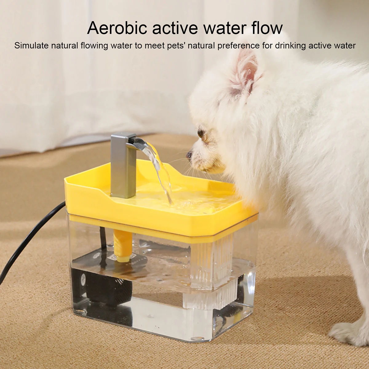 Aerobic active water flow: Simulate natural flowing water flow, meet the pet’s natural habit of drinking active water, and increase the pet’s interest in drinking water.