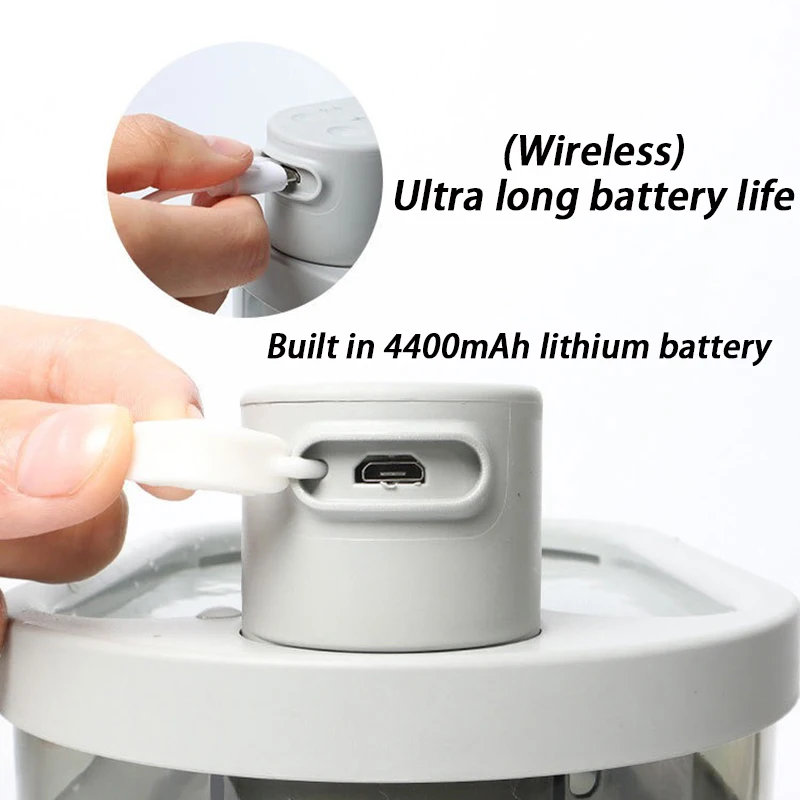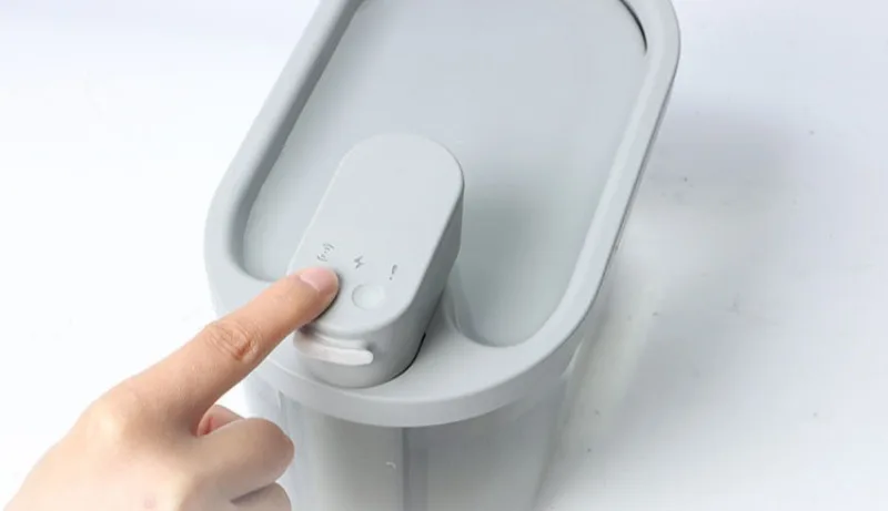 When the working mode indicator light flashes, the machine must be charged. When charging, the red light of the charging indicator light turns on, and it shows green when it is full; when the warning light flashes red, it reminds of water shortage and automatically protects the shutdown. Short press the reset button after adding water; when the warning light is yellow and normally on, remind to replace the filter element (the filter element is factory set to be replaced by the water pump for 100 hours). Long press the reset button to reset after replacement; in the normal working water outlet state, long press the reset button to turn on or off the ambient light in the water tank and the sterilization light in the body.