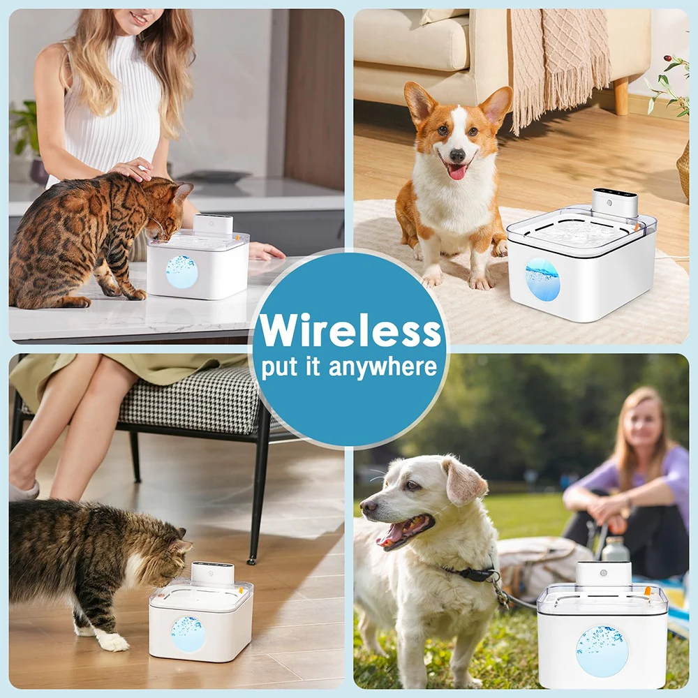 3L Wireless Cat Water Fountain Automatic Pet Water Feeder 5200mA Rechargeable Dog Water Fountain Built-in Battery Sensor System