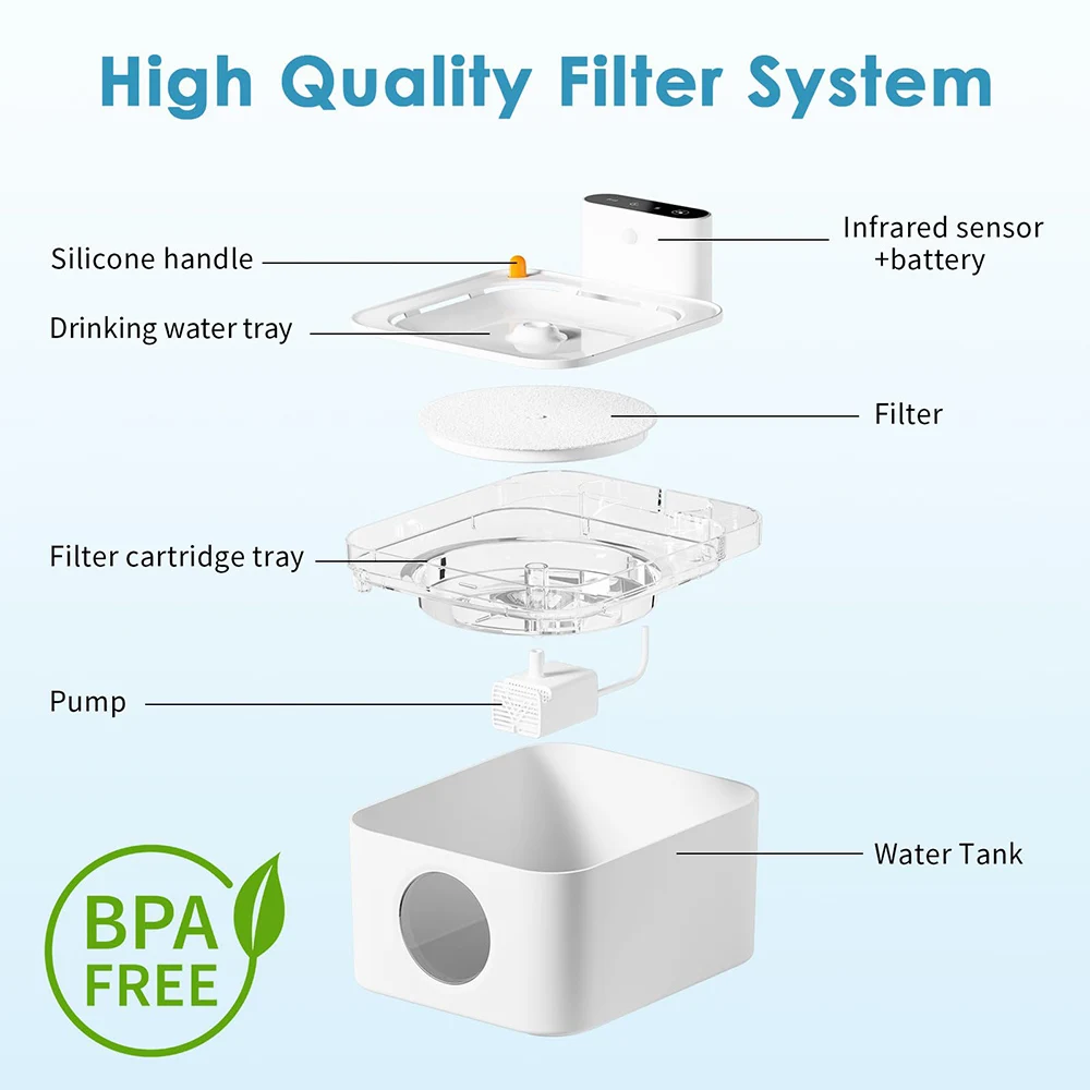 3L Wireless Cat Water Fountain Automatic Pet Water Feeder 5200mA Rechargeable Dog Water Fountain Built-in Battery Sensor System