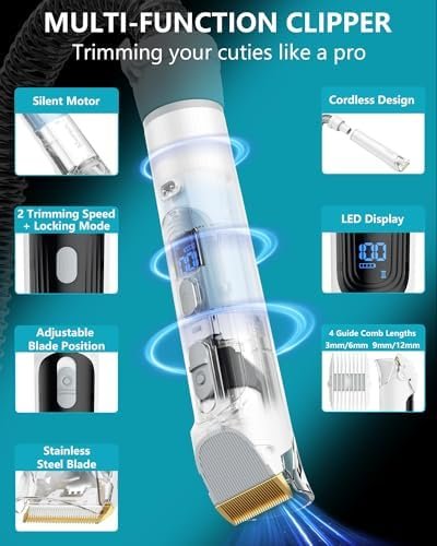 Dog Grooming Vacuum, Bawetech B2 5-in-1 Pet Grooming Kit with Dog Clipper, 11000Pa Suction | 2L Capacity | 113℉ Dryer | Low Noise Pet Hair Removal Tool Pet Supplies, 2025 Upgraded