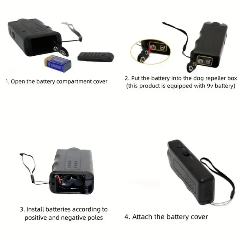 Slide the dog barking deterrent function switch to the “Chaser” site. Facing the dog for a few minutes, the flashlight of the barking prevention device will flash and emit high-intensity ultrasound, which will help drive away other dogs.