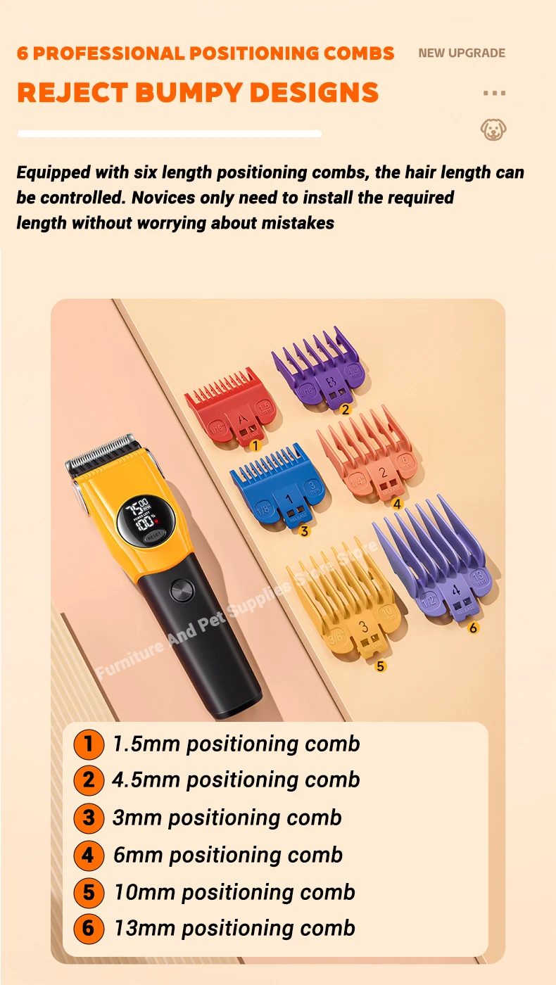 –Equipped with six length positioning combs, the hair length can be controlled. Novices only need to install the required length without worrying about mistakes (1.5mm positioning comb/4.5mm positioning comb/3mm positioning comb/6mm positioning comb/10mm positioning comb/13mm positioning comb)