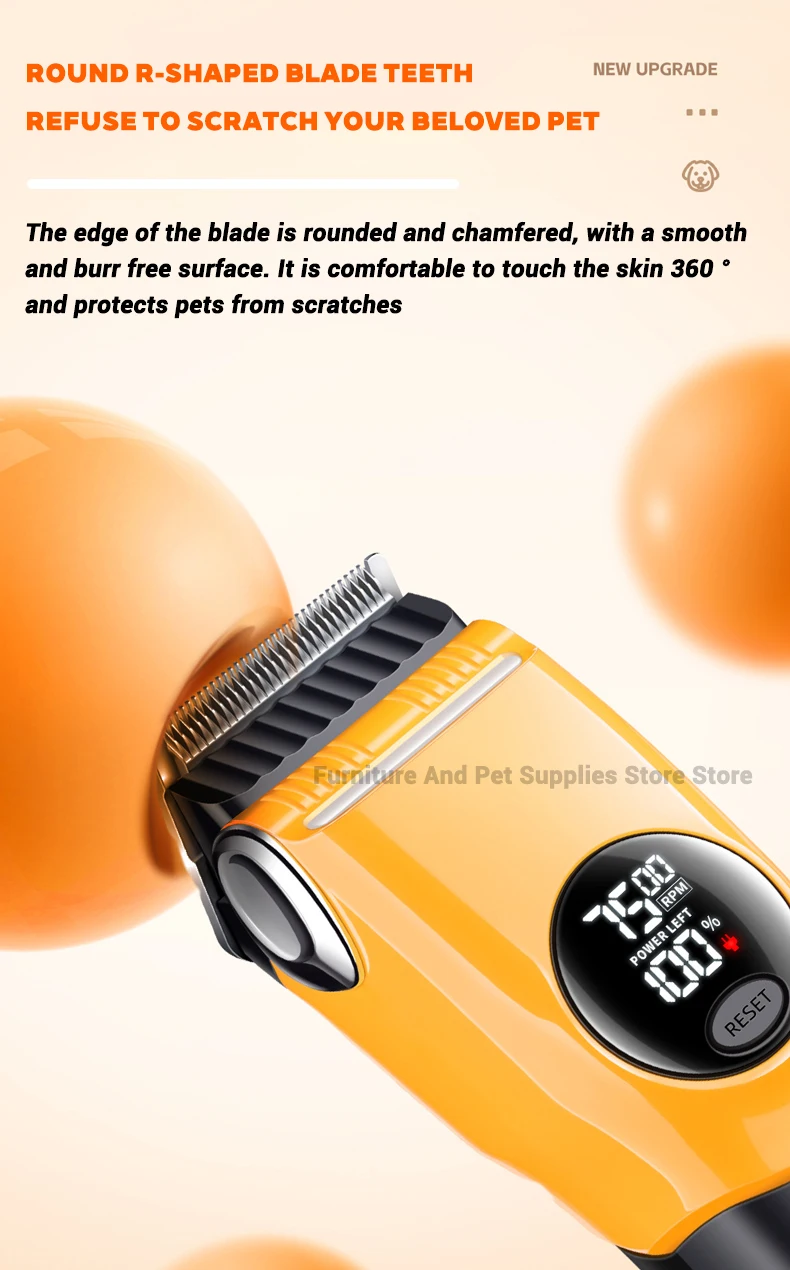 –33 tooth encrypted blade head, with less hair per tooth, ensures even force distribution on a single hair during shaving, avoiding pulling on pet skin. It is especially friendly to sensitive areas such as armpits and groin