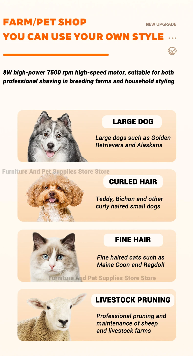 –8W high-power 7500 rpm high-speed motor, suitable for both professional shaving in breeding farms and household styling