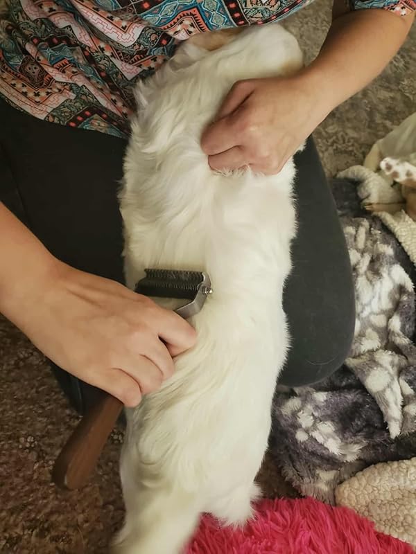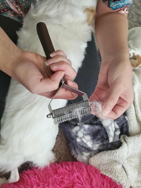 Excellent tool for my dog’s care. Double-sided design makes it very easy to remove dead hair and detangle without hurting him. The handle is comfortable and sturdy and the blade material is of good quality. In just a few strokes you can notice the difference in the coat