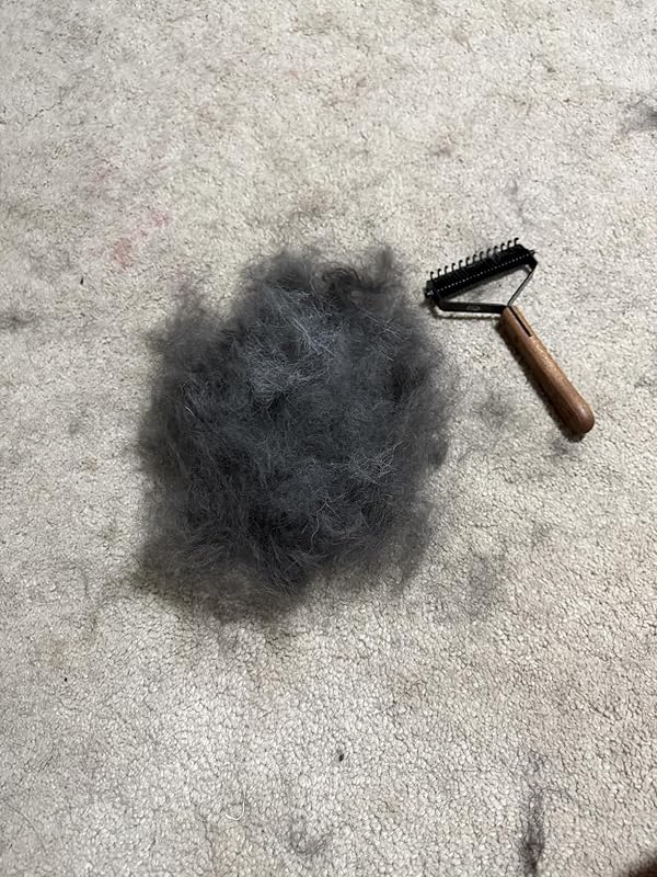 I used this on my husky / shepherd mix, and the amount of fur it got off was eye opening. The two-sided design is really versatile — one side works through mats and tangles, and the other side quickly removes loose undercoat. It’s gentle but effective, and my dog doesn’t seem to mind the grooming sessions at all.The wooden handle is comfortable to hold and feels sturdy, making it easy to use for longer periods. While I’ve tried it on a short-haired dog and it picked up some fur, it really shines on medium to long coats.Since I started using it twice per week, I’ve definitely seen a decrease in tumbleweeds of fur around the house. Overall, this is a durable, well-made grooming tool that really helps with shedding control.
