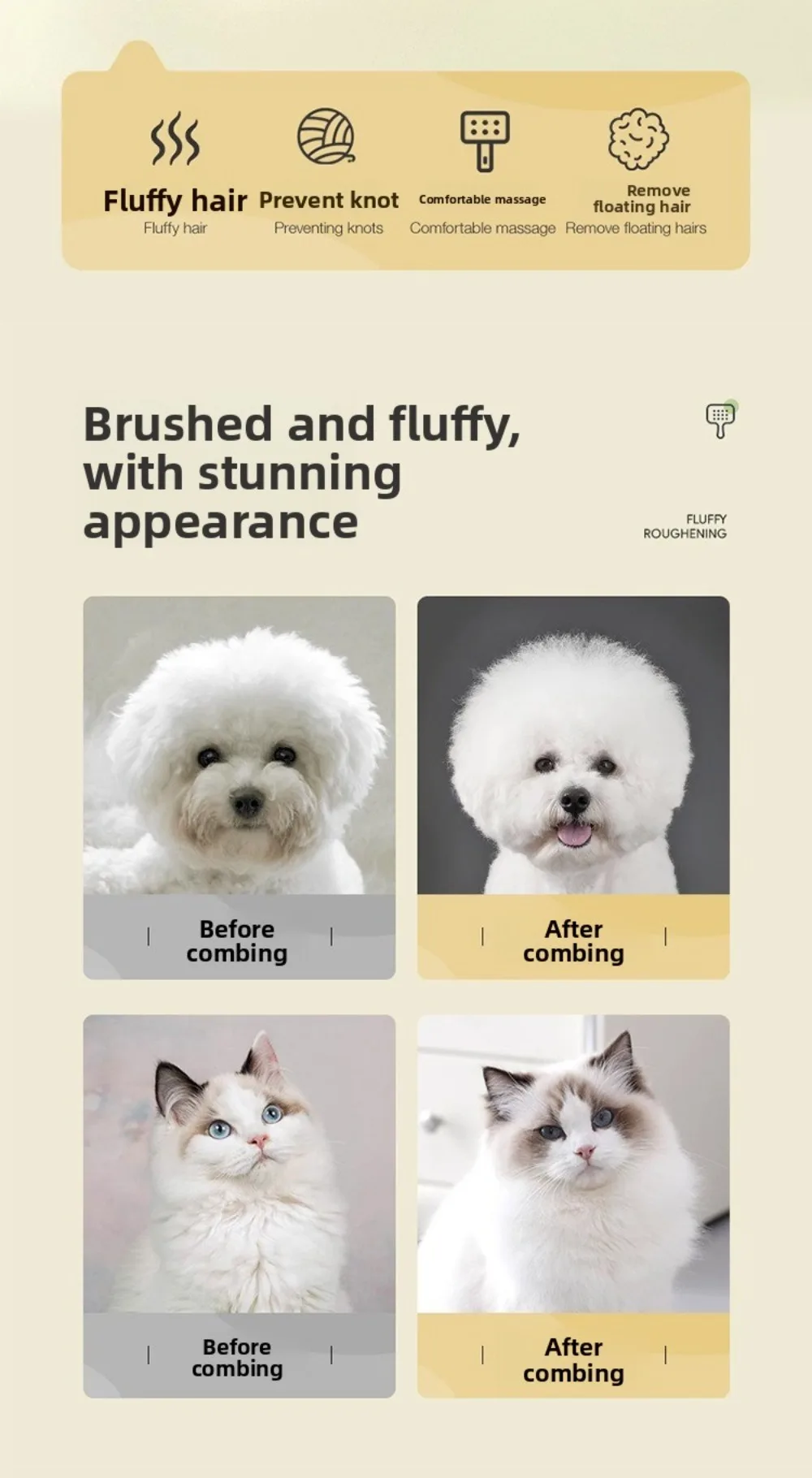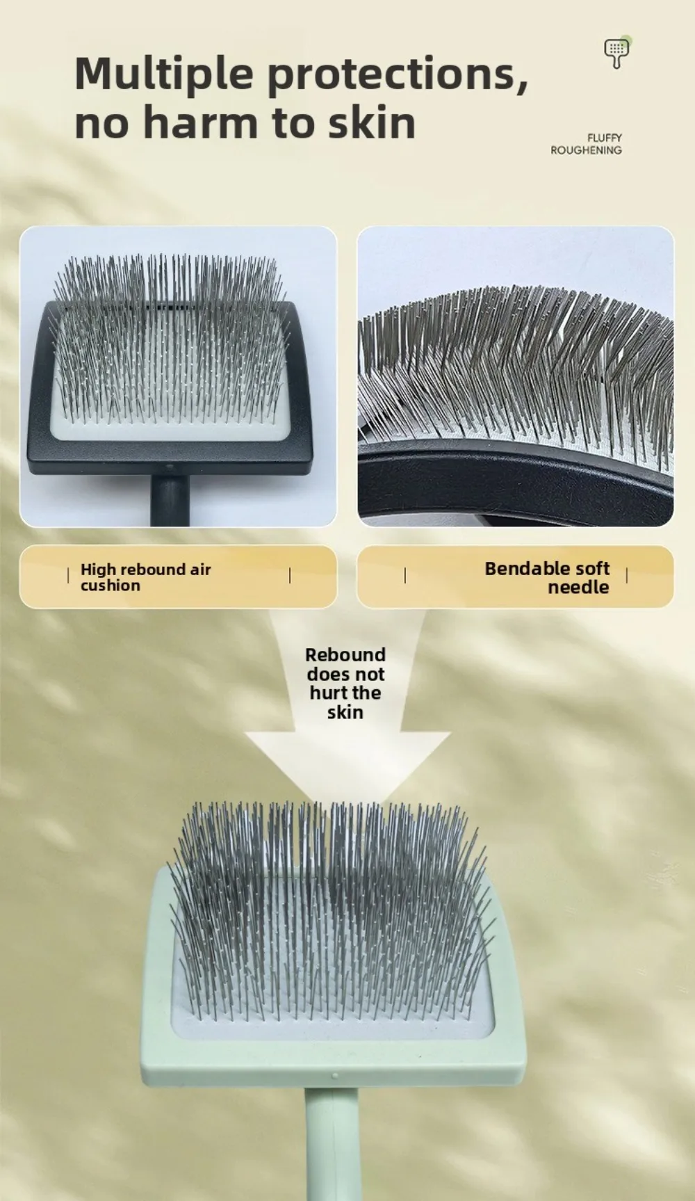 1. **Extra Long Pins**: Designed with extra long pins to penetrate deep into your pet’s fur, effectively removing knots and tangles.