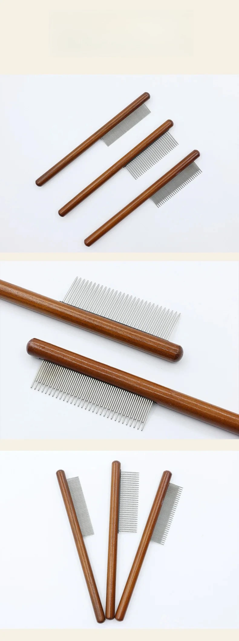 Stainless steel teeth are smooth and non – irritating, while the wooden handle provides a comfortable grip for precise grooming.