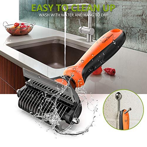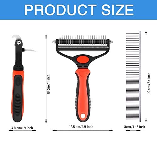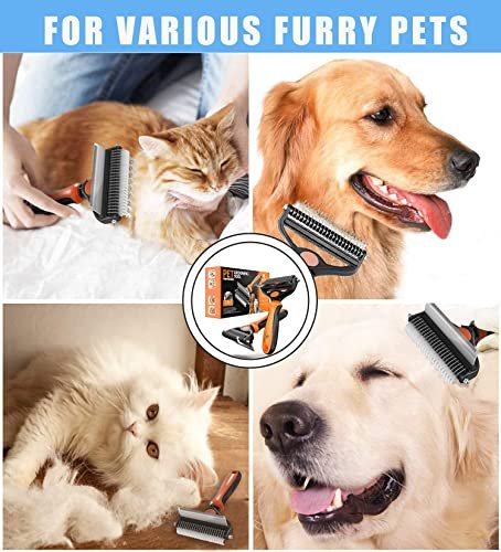 About this item ★【2-in-1 Dual Head】Dog Comb Start with 17 teeth of undercoat rake for cutting stubborn knots, mats and tangles without pulling, finish with 87 teeth shedding brush for thinning and deShedding. Professional pet grooming tool effectively reduces dead hair by Up to 97% ★【No Scratch, No Pain】-Both sides of teeth are end rounded, gently massage the pet skin without any scratch. Meanwhile, teeth inner side is sharp enough to smoothly cut the tough mats, tangles and knots without pulling. ★【Enjoy Comfortable Brushing】-Soft ergonomic anti-slip grip makes regular combing comfortable & relax. No-rust stainless steel teeth are ultra-durable & easy to clean ★【Great for Medium to Large Dogs】-Spring Blossoms large dog brush designed to work with medium to large dogs with single or double coats and long or medium hair. Work great for dogs like Sheltie, Cocker,Bulldog,Boxer, Husky, Labrador, Goldendoodle,German Shepherd,Rottweiler ★【No Worry Purchase】For any reason, you or your pets don’t love this brush, let us know freely by contact seller, we are always here to provide return or replacement customer service.