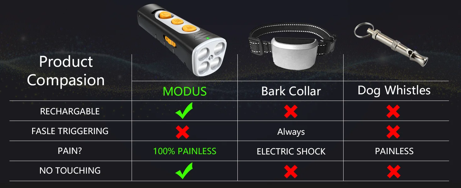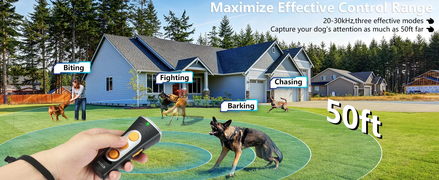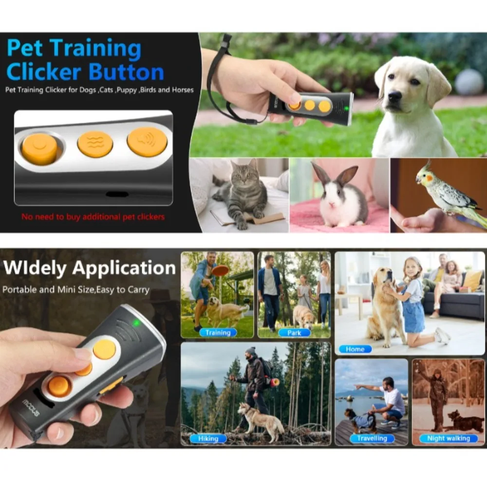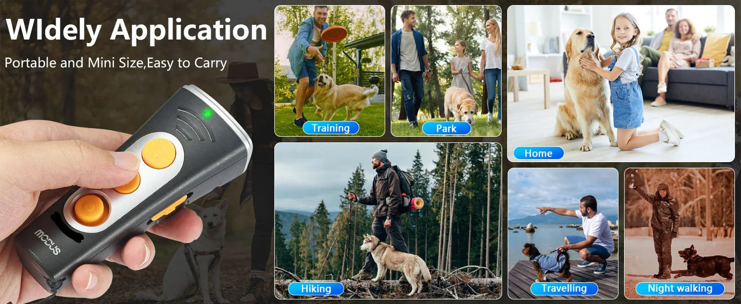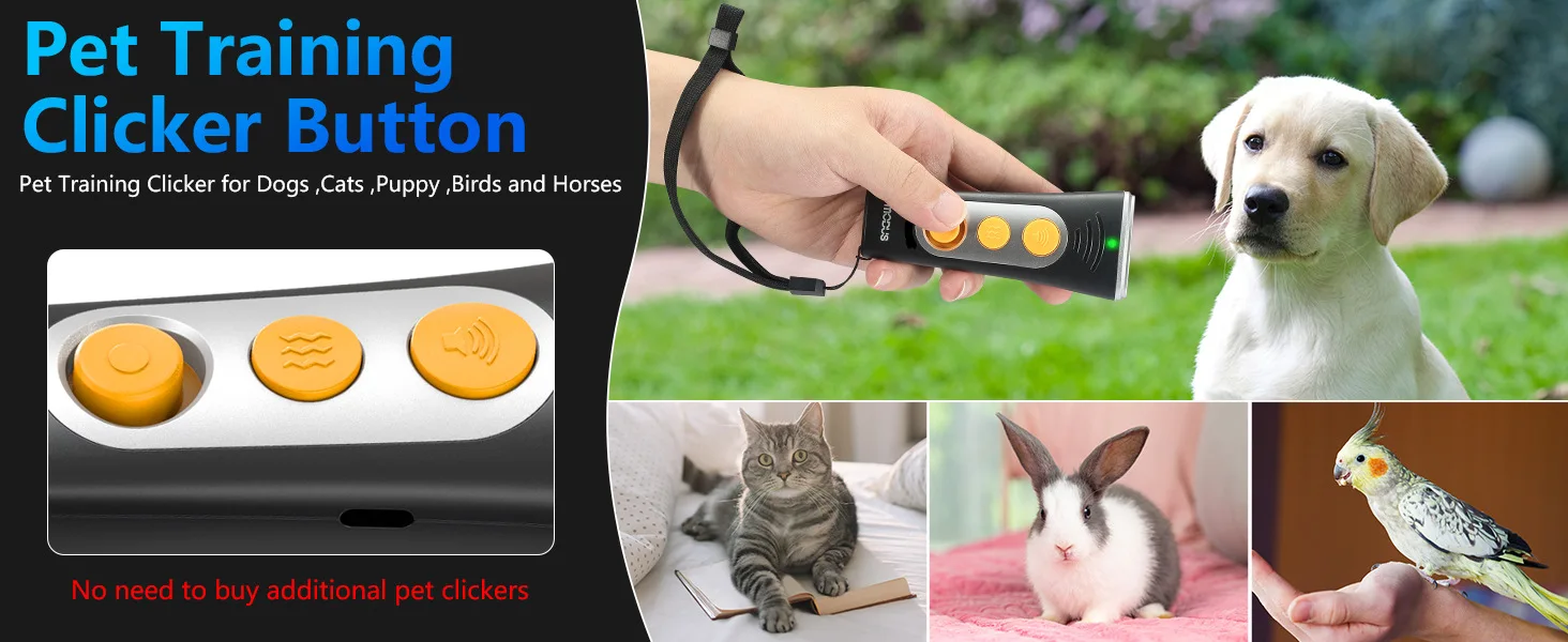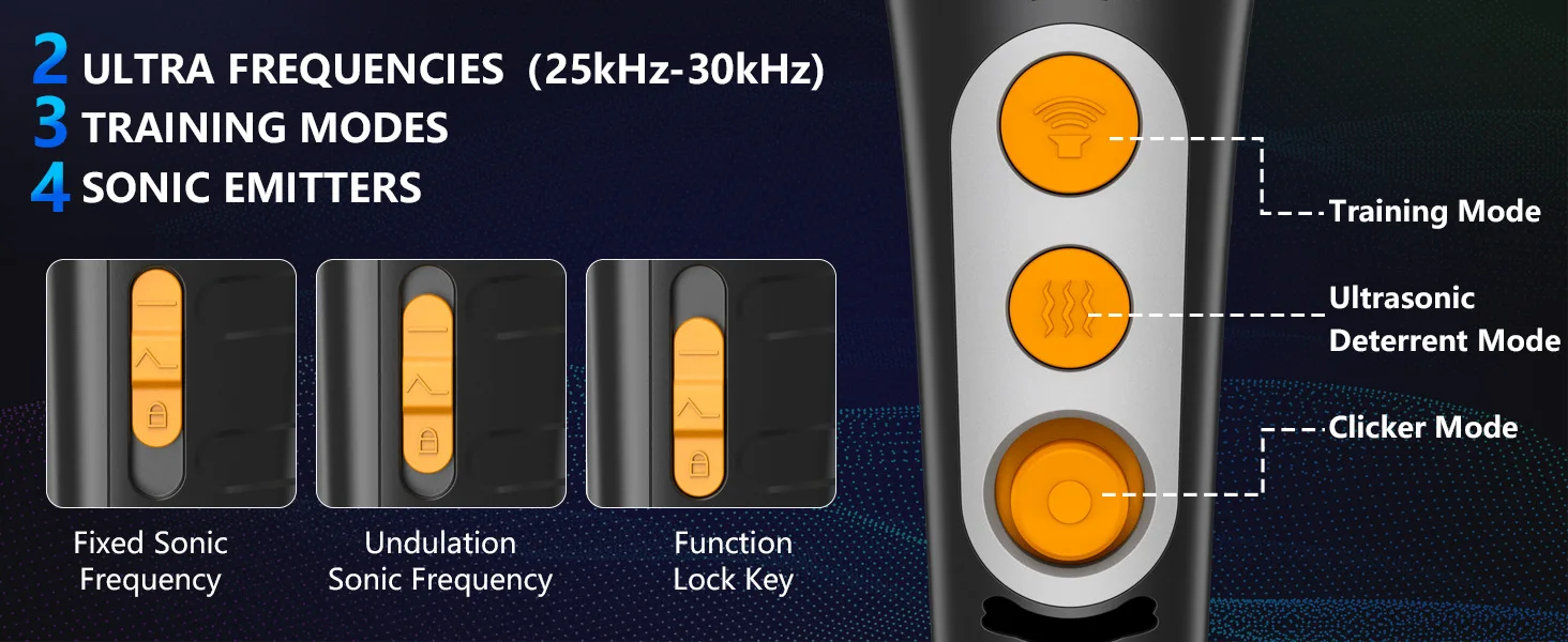 There are three working modes: ultrasonic dog repellent mode, ultrasonic dog training mode, and clicker mode