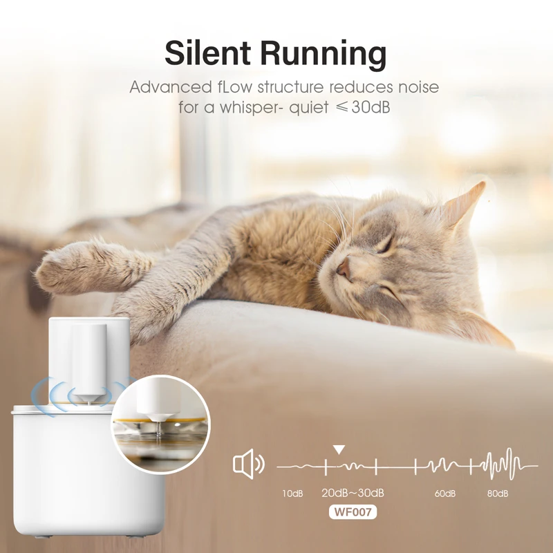 As a adorable pet, I love that my Wireless Cat Water Fountain keeps my water fresh and flowing all day.Allowing my owner to place it anywhere in home for my convenience without being tied down by cords. It’s like a little stream just for me!